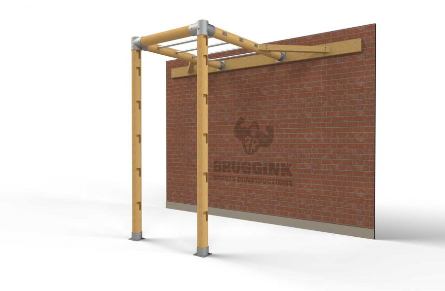 Flying Pull-up Ladder voegt een nieuwe trainingsdimensie toe aan de Wooden Rig. Deze pull-up ladder bestaat uit vijf optrekstangen.
